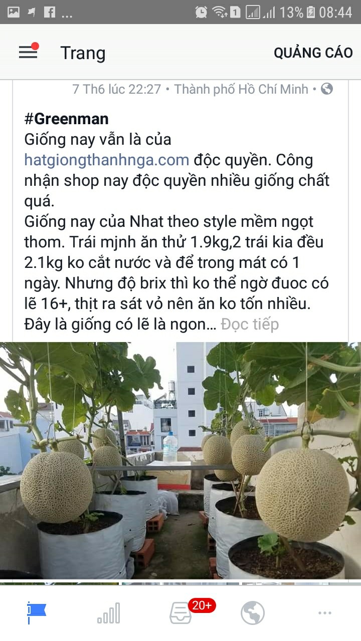 Shop thanhnga cung cấp số lượng lớn hạt giống dưa lưới ruột xanh green man . Ngoài gói nhỏ có gói lớn cho nhà vườn. Hiện nay ngoài hạt giống chúng tôi đã có trong tay danh sách 1 số nhà vườn lớn trên toàn quốc đang trồng loại dưa này. Qúy khách có nhu cầu mua sỉ trái thương phẩm có thể liên lạc để chúng tôi kết nối tới người bán. Mọi thông tin chi tiết xin liên hệ 090.621.6233- 036.363.0300