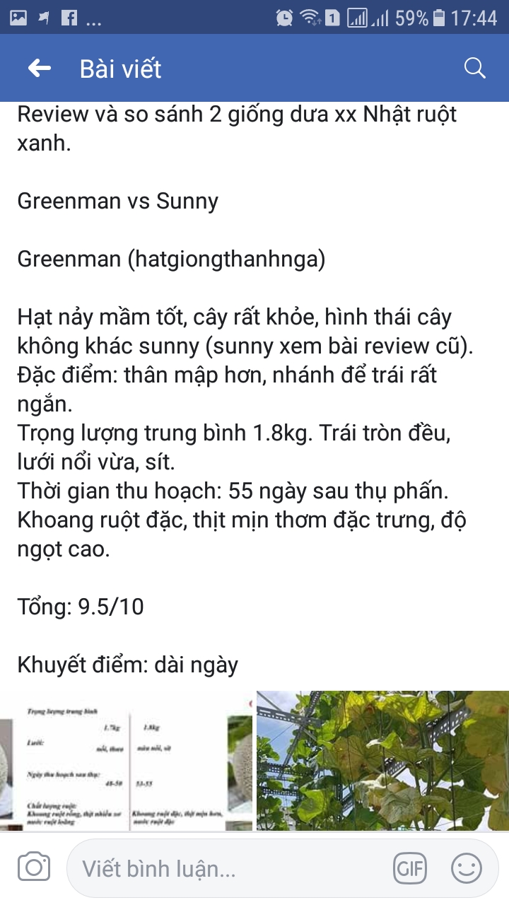 1 đánh giá mới nhất nêu rõ cả ưu nhược điểm. Nếu như ưu điểm là ngon thì nhược điểm đúng là nó dài ngày hơn các giống khác. Các giống khác chỉ thường thu hoạch 40 đến 45 ngày sau thụ phấn. Bọn green này cỡ phải đến 55 ngày. Tuy nhiên 1 điều đặc biệt mà chúng ta có thể đúc kết rằng dưa giống dài ngày ngon hơn giống ngắn ngày là chắc. Vì nó tích lũy đủ đường do có thời gian hứng nhiều nắng. Cũng như đứa trẻ đẻ đủ tháng sẽ cứng cáp hơn đứa trẻ sinh non vậy