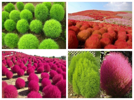 Cỏ đổi màu kochia là một loại cỏ thường mọc thành từng bụi hình cầu tròn, lá màu xanh. Tới mùa thu, lá sẽ chuyển từ màu xanh, sang màu vàng, rồi đỏ rực