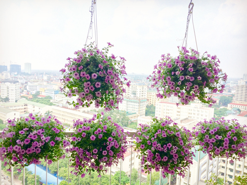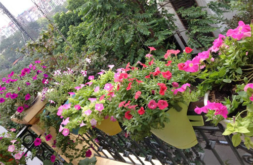 dạ yến thảo rủ độ buông rủ lớn trông 1 chậu hoa rất xum xuê, rực rỡ. Nếu trồng ở các thành ban công hay hàng rào sắt thì sự tươi tốt, thu hút của lá hoa sẽ che đi khuyết điểm của những ban công cũ hay hàng rào rỉ sét.