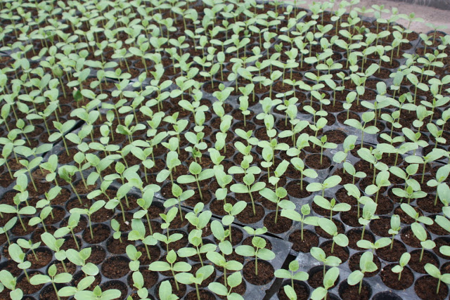 Đất ươm hạt thường là đất sạch xử lý kĩ vôi bột và tricodemar để tiệt mầm nấm, sau đó thường trộn thêm phân trùn hoặc phân chuồng mục để bổ sung thêm dinh dưỡng cho hạt nhanh nảy mầm. Sai khoảng 10 ngày thấy cây ra lá thật thì mới đem trồng vào thùng lớn.
