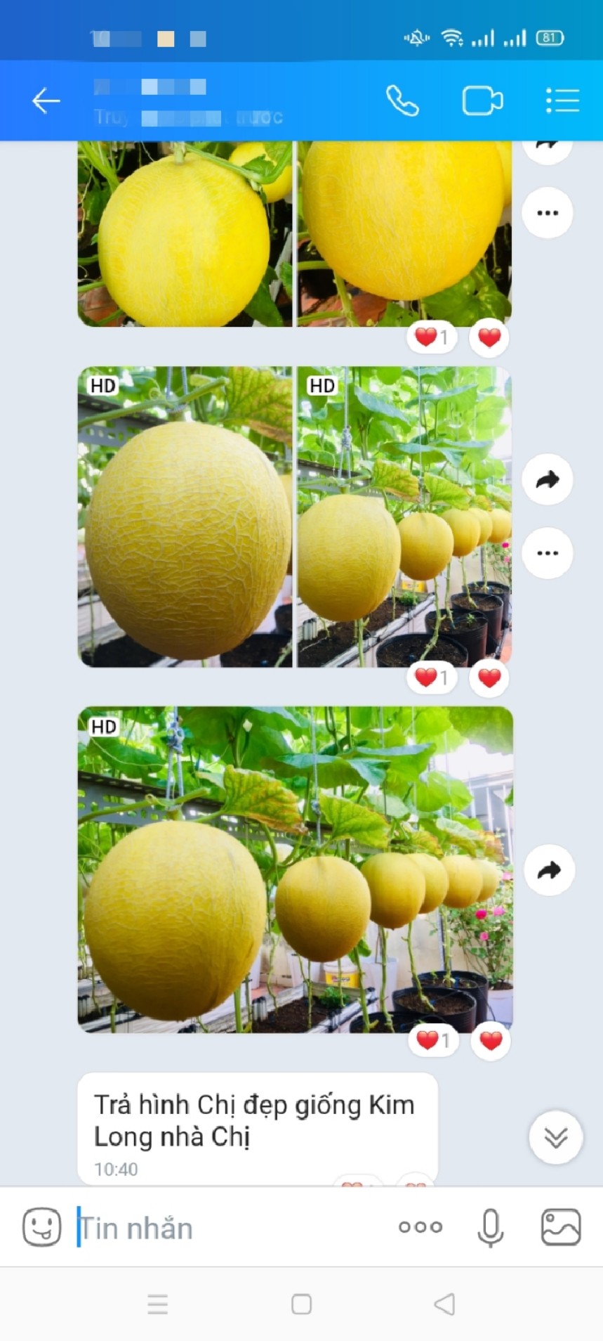 Hình ảnh giống dưa lưới Kim long của Thanh Nga trồng tại trang trại của khách hàng tại nhiều nơi trên cả nước. Từ năm 2018, Quả thương phẩm đã được hệ thống siêu thị Lan Chi Food thu mua và bày bán trên hệ thống các siêu thị thành viên của họ và được khách hàng đánh giá cao. Sản phẩm hạt giống dưa lưới Kim Long và Hình ảnh độc quyền của Thanh nga không giao cho bất kì đại lý nào phân phối lại tránh trường hợp về sau đại lý trộn giống rẻ tiền vào làm ảnh hưởng đến uy tín. Các shop khác vui lòng không Copy dưới mọi hình thức.Chúng tôi không chịu trách nhiệm nếu quý khách mua hạt ở nơi khác mạo nhận dưa lưới Kim long. Hiện nay trên mạng xã hội có 1 vài cá nhân đăng quảng cáo rao vặt rao bán hạt Kim long bằng 1 tên tây tên tàu gì đó hoặc nhận chính là Kim Long hay Kim Vương, Kim Hậu gì đó với hình thức na ná giống của chúng tôi, khuyến cáo khách hàng trồng nên thận trọng. Khách lẻ trồng sân thượng nhiều khi thích mạo hiểm 5 ăn 5 thua còn nhà vườn chuyên nghiệp chắc chắn không cần phải dặn bởi họ đủ tỉnh táo trước khi xuống giống. Khi làm kinh tế thường yêu cầu độ đồng nhất của giống rất cao, trồng chục cây, hai chục cây khác trồng cả ngàn, cả vạn cây. Trong ngành sản xuất hạt giống của các công ty trong nước cũng như nước ngoài, họ sẽ chia thành phân khúc hạt F1 ( chuyên cho nhà vườn trồng kinh tế) và hạt OP( tức hàng chợ, trồng nhỏ lẻ, hoặc mang tính trồng ở nhà ăn, không kinh doanh, thường đóng gói nhỏ chứ không vào các túi lớn như kênh nhà vườn). Các farm nhà vườn trồng hàng loạt với số lượng lớn do vậy yêu cầu về độ đồng nhất của giống rất cao, các đặc tính cơ bản đi kèm cũng chặt chẽ không kém. Hạt giống bên Thanh Nga 100% nhập khẩu từ nước ngoài túi lớn về công ty mẹ, sau đó được chúng tôi đóng gói về thương hiệu Kim Long của Thanh Nga cả gói lớn cho nhà vườn và gói nhỏ cho các bạn trồng sân thượng. Chúng tôi bảo đảm nguồn giống Kim Long chuẩn nếu bạn mua đúng tên và bao bì Thanh Nga. Còn bạn mua từ 1 kênh online nào đó hoặc thậm chí order từ kênh tiểu ngạch, mua trên web alibaba hay taobao thì đó là những phạm trù khác hẳn và chúng tôi xin phép miễn bàn. Hiện tại Hạt giống của chúng tôi có mặt tại TpHCM và Hà Nội, các tỉnh khác chúng tôi nhận gửi bằng chuyển phát.