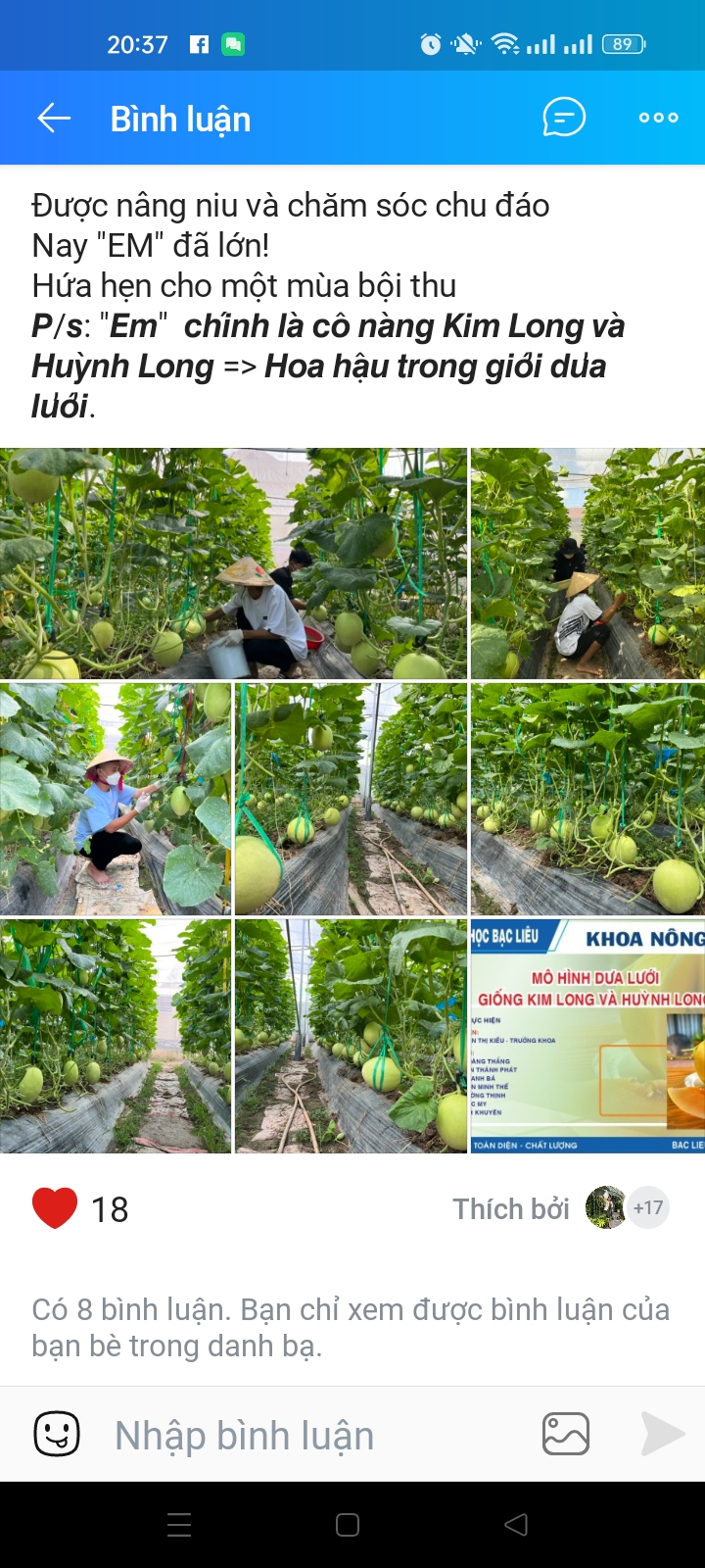 Mới nhất cập nhật ngày 15/2/2023, hình ảnh giống dưa Kim long và Huỳnh long của Hạt giống Thanh Nga được Khoa Nông nghiệp, Trường đại học Bạc Liêu. Thực hiện bởi Tiến sĩ- Trưởng khoa N.K và các SV ưu tú triển khai bước đầu đã đạt được những thành công nhất định.
