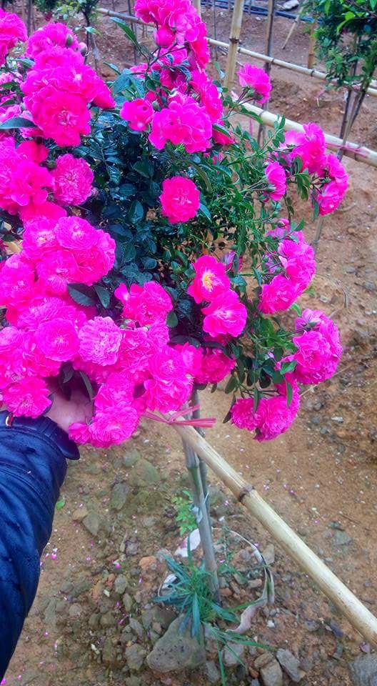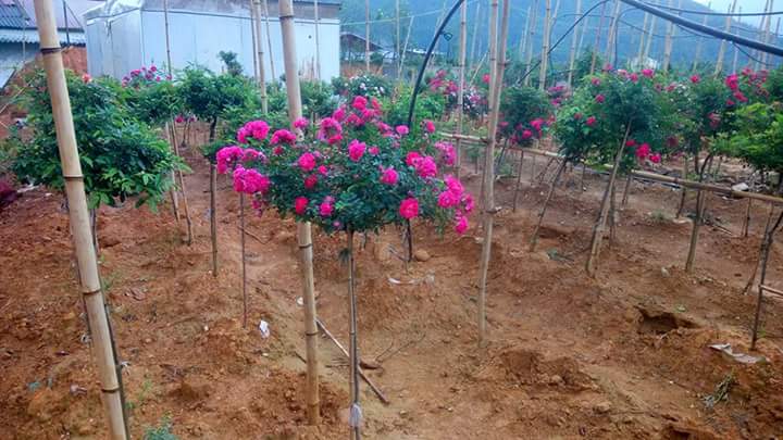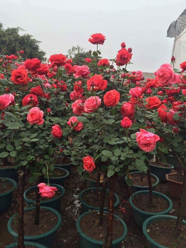 Thời gian ra hoa từ lúc trồng là 1 năm hoặc lâu hơn tùy khí hậu từng vùng, cây hồng đã cho hoa bói nhìn rất đẹp, hồng trồng từ hạt cây thường sống dai và phát triển mạnh do nó được nuôi từ nhỏ.Các bạn có thể dùng que thẳng và cắt tỉa những cành phụ ở dưới để chống cho cây từ bé , tạo thế đẹp cho cây. Khi cây đã phát triển mạnh thì sẽ cho hoa đóa lớn kèm đóa nhỏ, là loại được ưa chuộng nhất hiện nay. Dưới đây là hình ảnh thật cây hoa hồng thân gỗ trồng trồng hàng dãy trong sân nhà.Thật đẹp và nổi bật phải không các bạn. Hình ảnh tại nhà 1 bạn rất yêu và chuyên trồng cây các loại