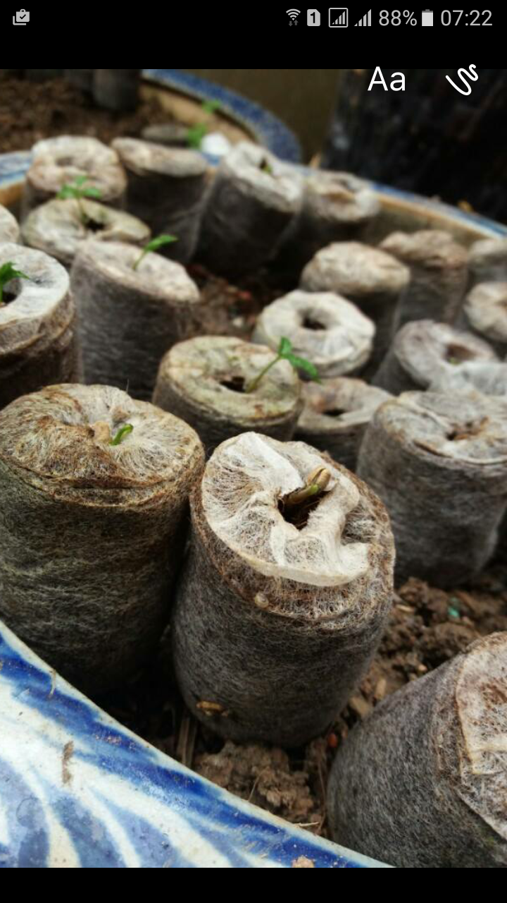 Lưu ý cần chuyển cây vào ngày mát, tránh ảnh hưởng đến rễ cây. hồng thân gỗ thuộc nhóm hạt giống nhập khẩu từ nước ngoài ,nên cần nhớ tưới hàng ngày, không nên nôn nóng vội vã mà quên tưới nhé. Đất trồng luôn ẩm ướt.dưới đây là ảnh hạt hồng được ươm từ bầu nén đã xử lý kích mầm. các bạn nhìn kĩ bầu nén được ươm ẩm ướt và nhuốm màu thời gian