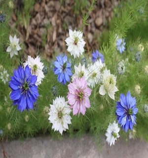 Hạt giống hoa bảo thạch ba tư hay còn gọi là hoa kim cương, Tình yêu trong sương mù (Love in a Mist) có tên khoa học Nigella Damascena thuộc họ Mao lương. Có nguồn gốc từ châu Âu. Hoa kim cương có hoa màu xanh, thỉnh thoảng sẽ có bông màu trắng hoặc tím nhạt. Hoa có nhiều cánh, vuông vức như 1 viên kim cương xanh. Hoa mang 1 vẻ đẹp dịu dàng, kín đáo. Cây trưởng thành mọc thành bụi, có thể cao tới 50cm.