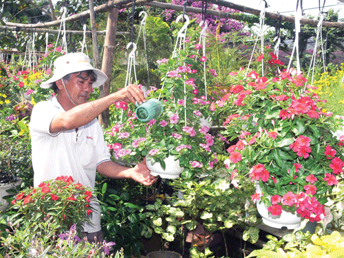 Mỗi chậu nhựa treo có thể trồng từ 1 - 3 cây con. Sau 1 tuần có thể phun B1 để kích thích bộ rễ phát triển, sau 10 ngày thì có thể bắt đầu dùng phân bón thúc cho cây hoặc phun phân bón lá. Phải tưới nước đều đặn ngày 2 lần vào sáng sớm và chiều mát.