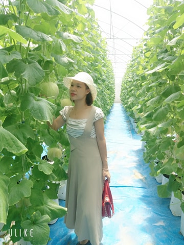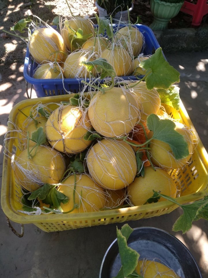 Còn đây là ảnh em dẫn tụi nhỏ đi farm thu hoạch dưa lưới Kim long tại Hưng yên hè năm 2020 ạ. ảnh 1 là hình ảnh của giống dưa lưới Kim long